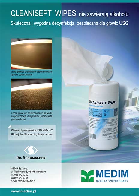 Plakat przygotowany dla firmy Medim, przeznaczony do prezentacji materiałów używanych przy badaniach USG, skierowany do personelu medycznego.